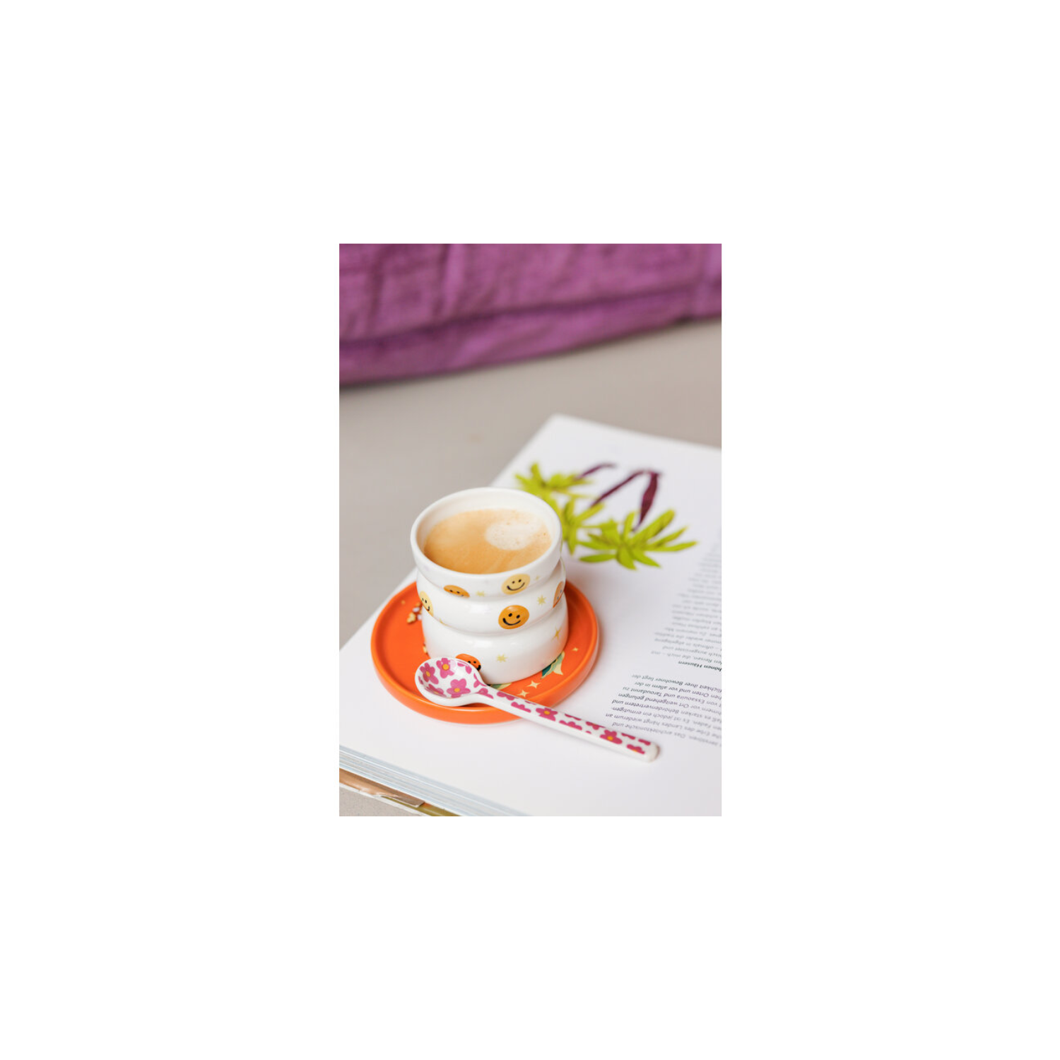 Dit bloemenpotje met smileys is een vrolijke toevoeging aan je interieur! Dit item is multifunctioneel, want je kan er ook een heerlijk koffietje uit drinken.