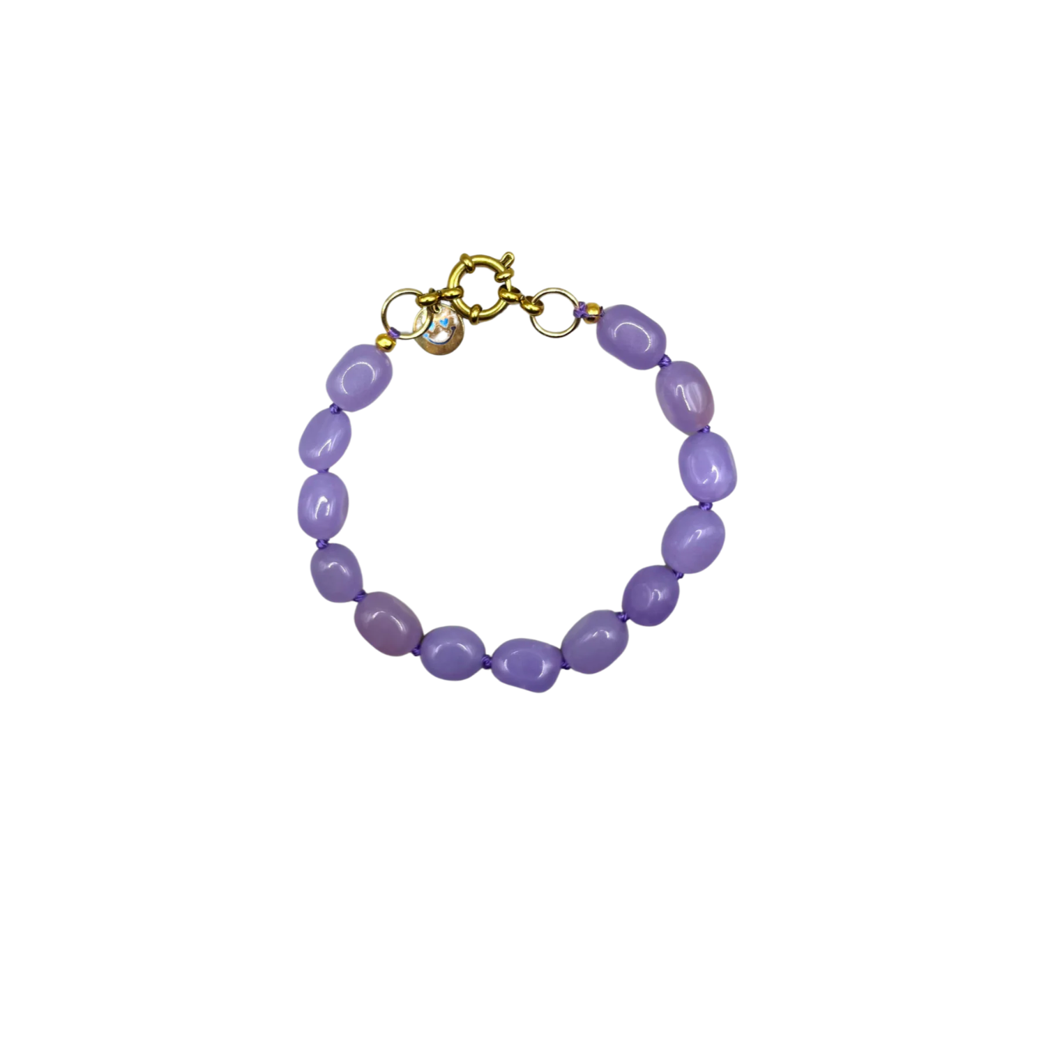 Handgemaakte geverfde Jade edelsteen armband, in een glanzende paarse kleur.