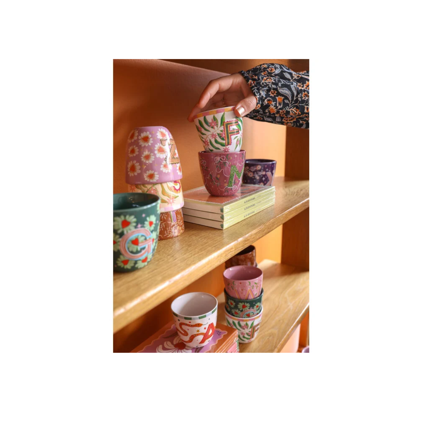 Onze ‘Monogram Cups’ zijn een elegante manier om je persoonlijke stijl en flair te laten zien. Elk van deze charmante kleine mokken is met liefde en precisie ontworpen door ons creatieve All the Luck in the World Design Team. Deze collectie biedt het volledige alfabet, waarbij elke letter een uniek ontwerp heeft.