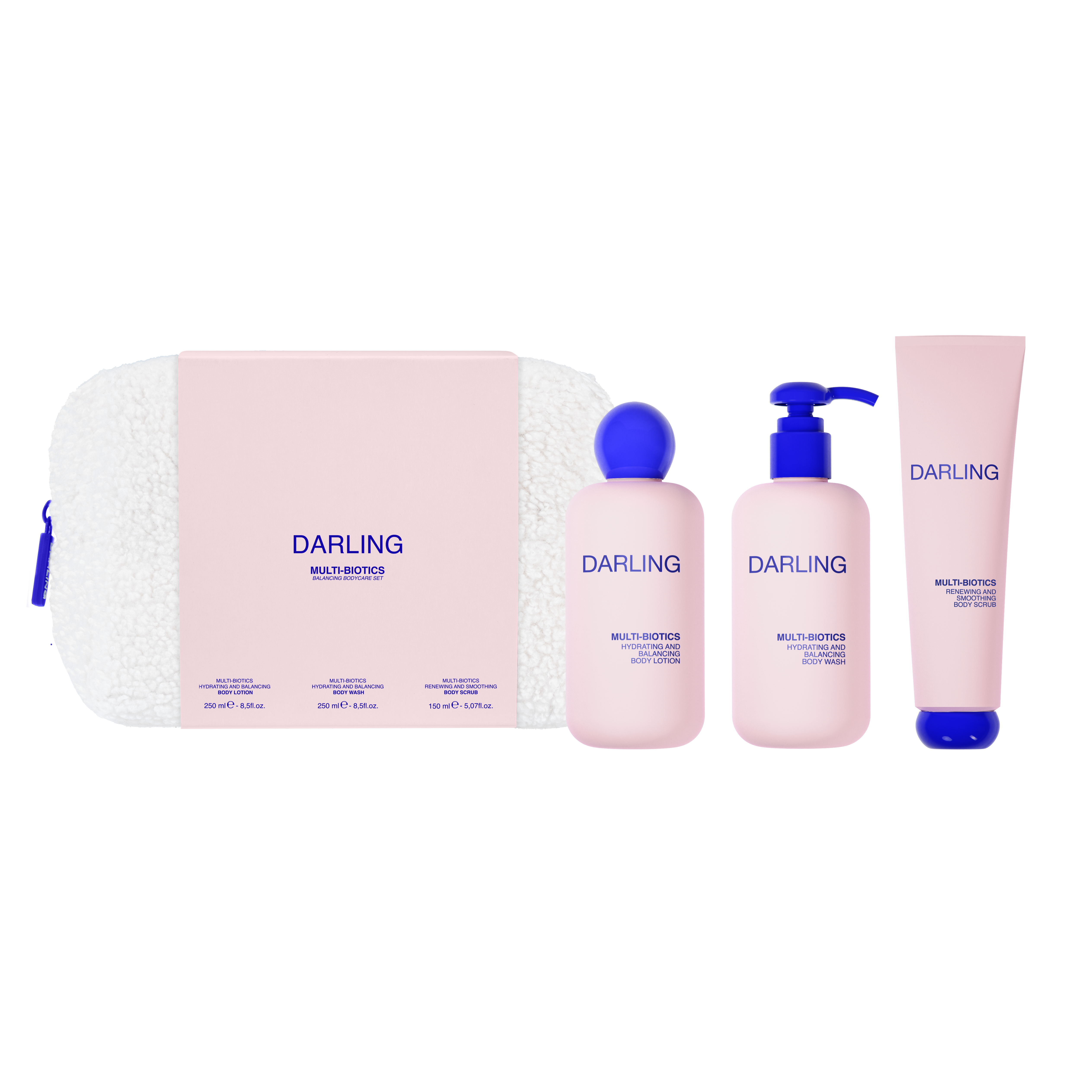 Laat je verwennen met de Darling Multi-Biotics Bodycare Set. Een exclusieve full-size trio, ontworpen om je huid in balans te brengen, te voeden en te beschermen.