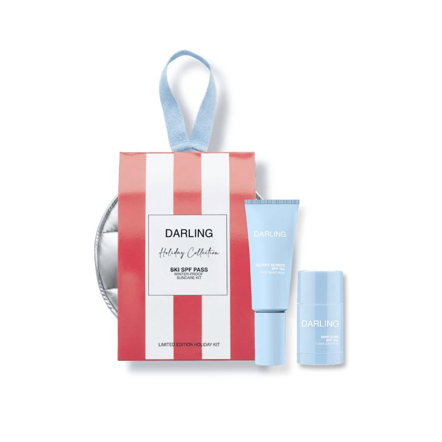Darling Ski SPF Pass is jouw winter-proof suncare kit. De kit bevat de cultfavoriete gezichtszonnebrandcrèmes van Darling en een chique zilveren etui. Dit duo beschermt je huid tegen zon, wind en blootstelling op grote hoogte, zodat je blijft stralen zowel op als naast de piste.