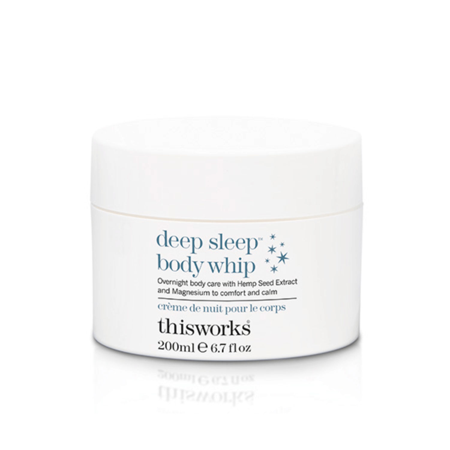 De Deep Sleep Body Whip van This Works is een rijke, 99 procent natuurlijke bodycrème die je huid voedt en je geest tot rust brengt voor het slapengaan. Deze verzorgende crème combineert hennepzaadextract, magnesium en Copper PCA om de huidbarrière te ondersteunen en de slaapkwaliteit te verbeteren.