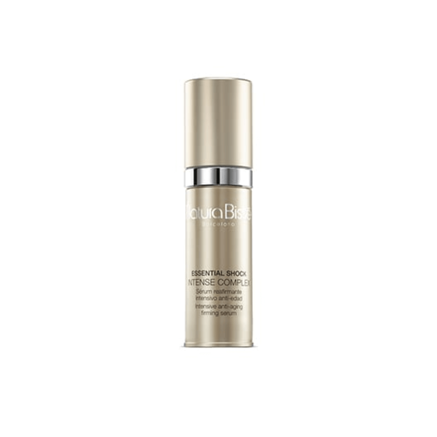 Het Essential Shock Intense Complex van Natura Bissé bestrijdt verslapping en contourvervaging, het regenereert, hydrateert, voedt intensief en vermindert de rimpeldiepte. Het serum staat bekend als de verstevigende multivitamine voor je huid, waardoor het dus een intensief verstevigend anti-aging serum is. Het serum herstelt de elasticiteit en soepelheid van je huid en geeft de rijpere huid een zachte en jongere uitstraling. De belangrijkste ingrediënten zijn het derma-complex, voor een gezonde, stevige en een huid met meer veerkracht en de isoflavonen die werken als botanisch oestrogeen om hormoonschommelingen in je huid tegen te gaan.