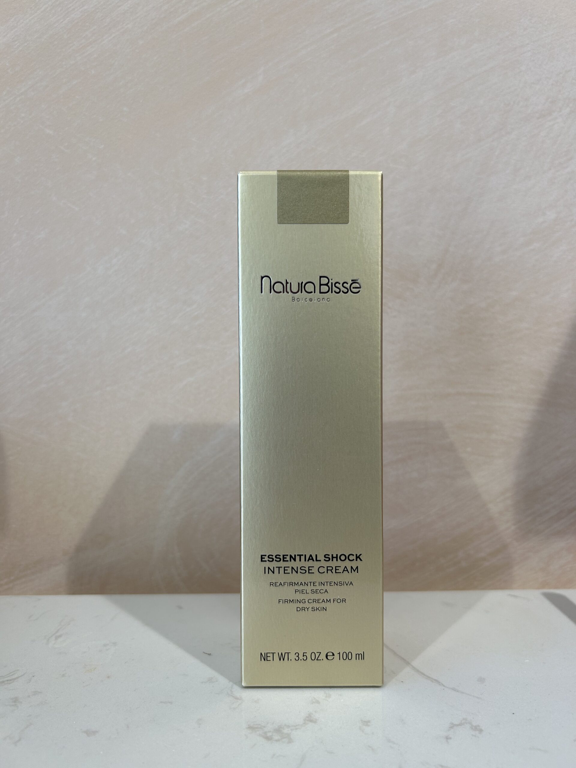 De Essential Shock Intense Cream van Natura Bissé is verstevigende creme die de aanmaak van collageen stimuleert en daarmee zorgt voor meer volume en veerkracht. Daarnaast vermindert het de schade die kan ontstaan door hormoontekort, dit wordt namelijk aangevuld door Isovlavonen (botanisch oestrogeen). De cocktail van aminozuren en vitaminen geeft de bouwstenen van je huid een boost, waardoor je een frisse, gladde en strakke uitstraling terugkrijgt of behoudt.