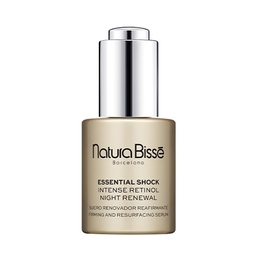 Het Essential Shock Intense Night Renewal serum van Natura Bissé is een skinbooster voor de nacht, die de kracht van retinol levert door middel van het natuurlijke ingrediënt backuchiol. In tegenstelling tot retinol veroorzaakt backuchiol geen bijwerkingen zoals droogte, irritatie of roodheid. Hierdoor is het serum ook zeer geschikt voor de gevoelige huid.