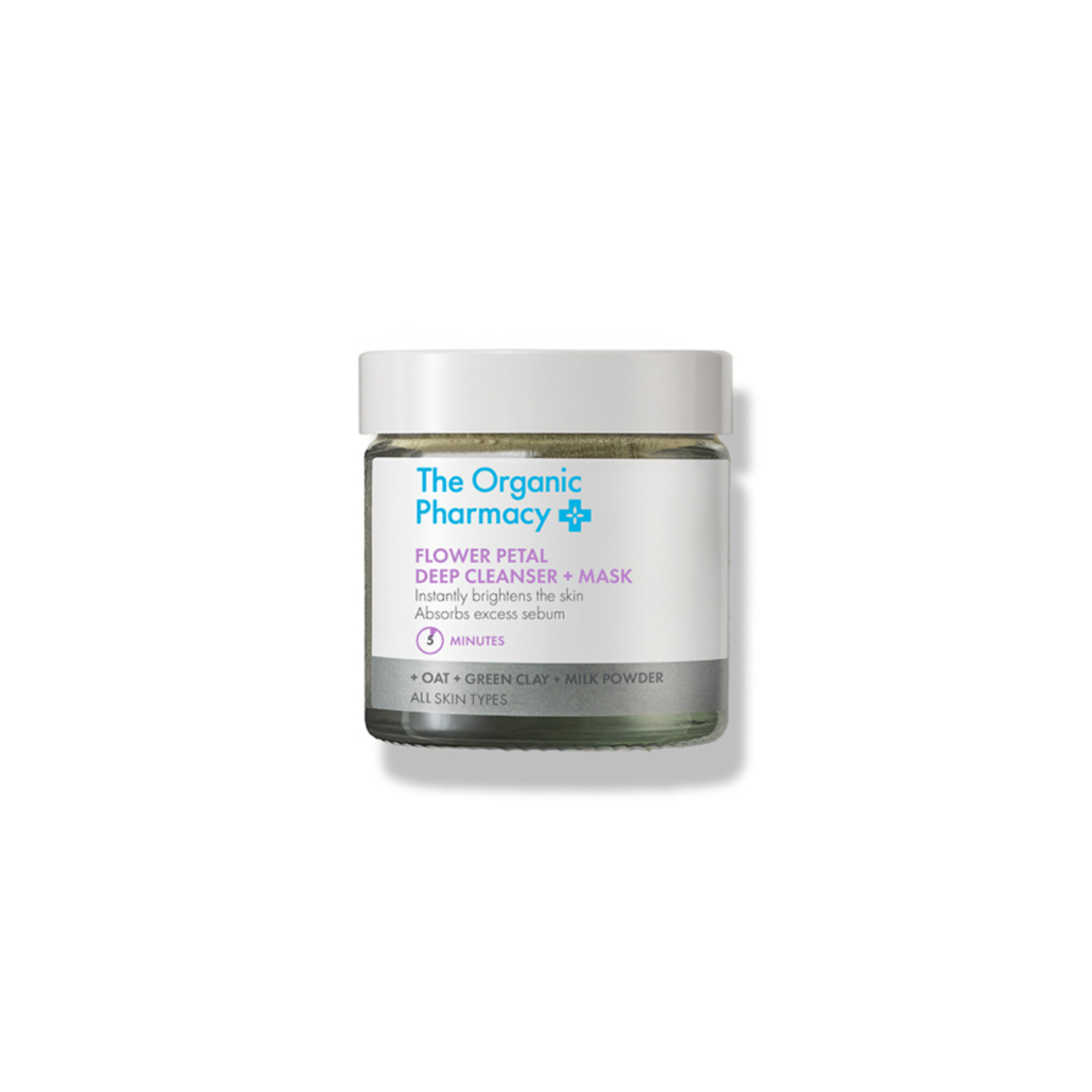 Flower Petal Deep Cleanser & Mask van The Organic Pharmacy bestaat uit een zachte poeder waar rozenblaadjes in verwerkt zijn. Je mengt het poeder met een beetje water tot een dikke pasta. Verdeel over je gezicht met ronddraaiende bewegingen om de huid diep te reinigen en dode huidcellen te verwijderen. Wanneer je huid wat extra verzorging nodig heeft kun je het product aanbrengen en zo’n 5 tot 10 minuten laten inwerken als een voedend masker. Poriën worden zichtbaar verfijnd en je huid krijgt onmiddellijk een prachtige glow!