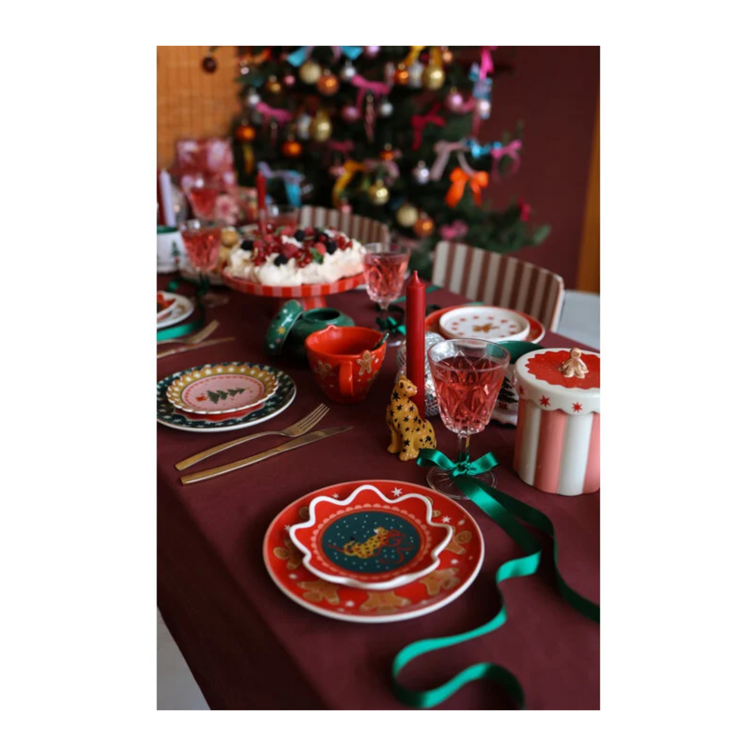 De collectie bestaat uit hoogwaardige keramische borden, serveerschalen en andere feestelijke accenten, versierd met onder andere schattige gingerbreads en sfeervolle kerstbomen. Elk stuk is met liefde geglazuurd om niet alleen een feestelijke uitstraling te bieden, maar ook langdurige duurzaamheid en gebruiksgemak. Ze zijn bestand tegen dagelijks gebruik en zijn magnetron- en vaatwasserbestendig.