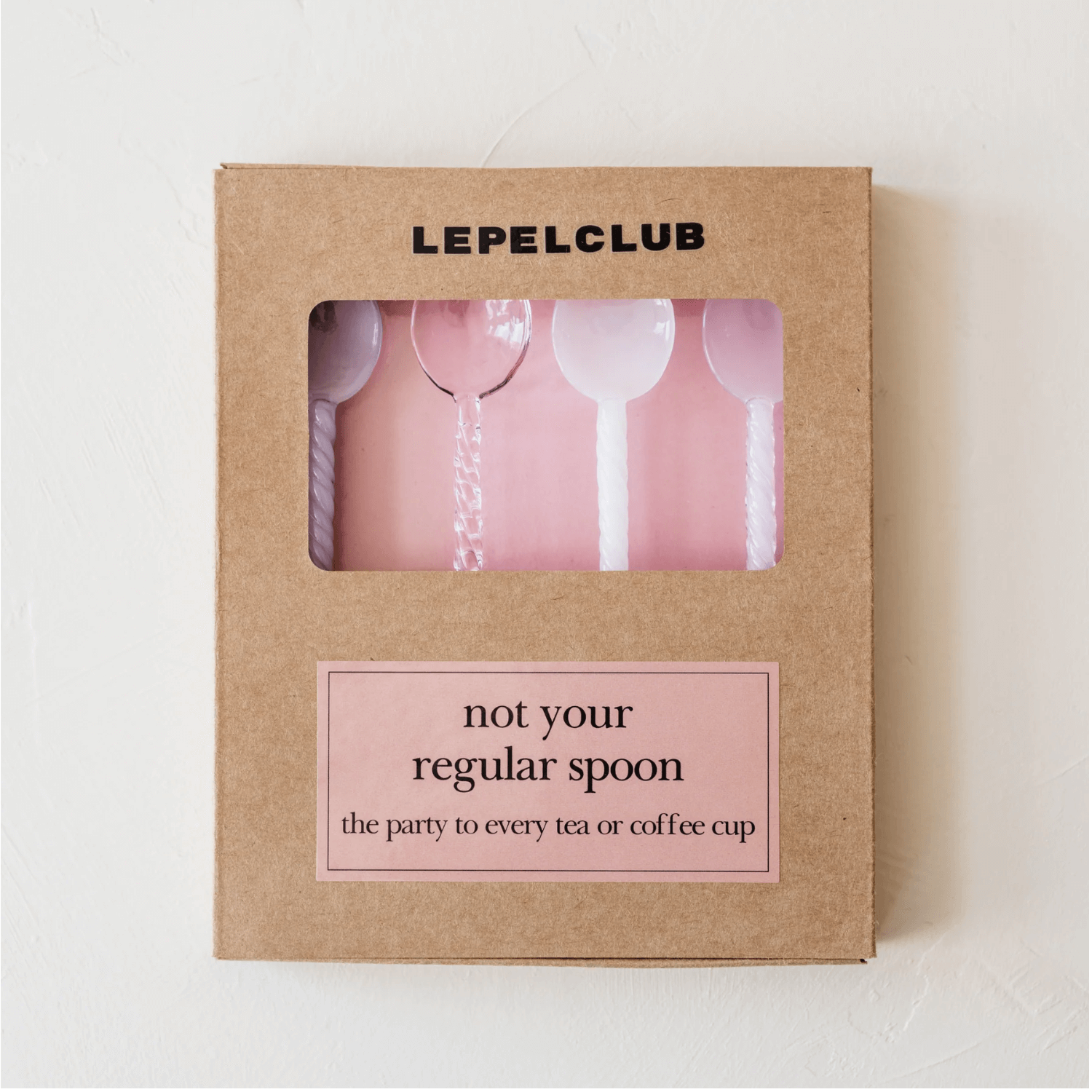 De Twisted Spoons komt in een set van vier pastelkleurige lepels. Elke lepel, gemaakt van borosilicaatglas, is uniek en handgemaakt.