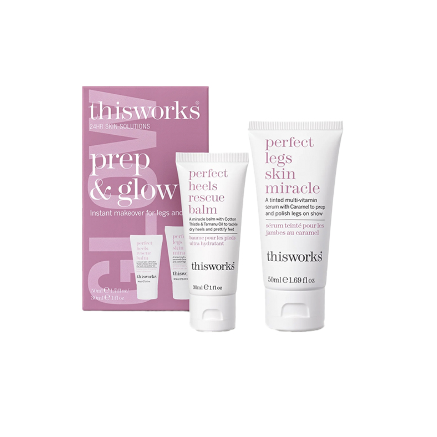 Maak je klaar voor een thuis pedicure en herstel een gezonde gloed voor op de benen en voeten met deze prep & glow kit van This Works. Dit Duo bestaat uit een diep voedende voetbalsem en een getint serum voor de benen.