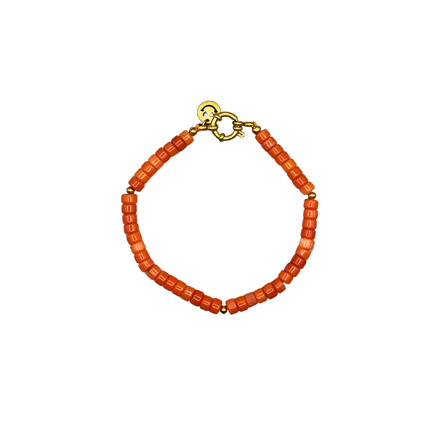 Handgemaakt en gemaakt van koraal met gouden parels ertussen.